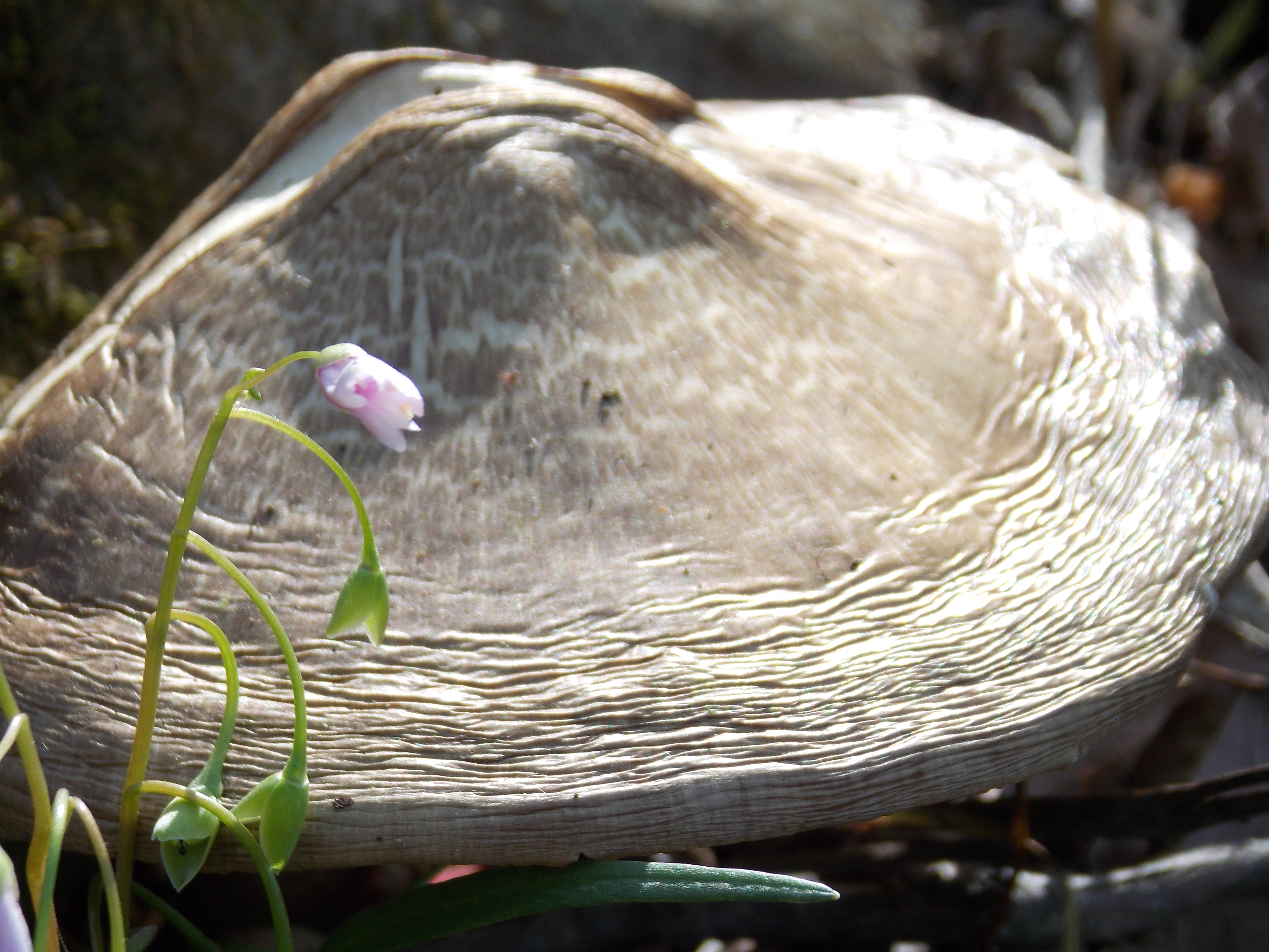 The trail would simply be left routed along the gravel road at the back end of the property for a quarter mile or so and, this being lunch time, I walked this route back towards headquarters. It was hot now, awfully hot for April. No sign of rain. This didn’t bode well for mushrooms.