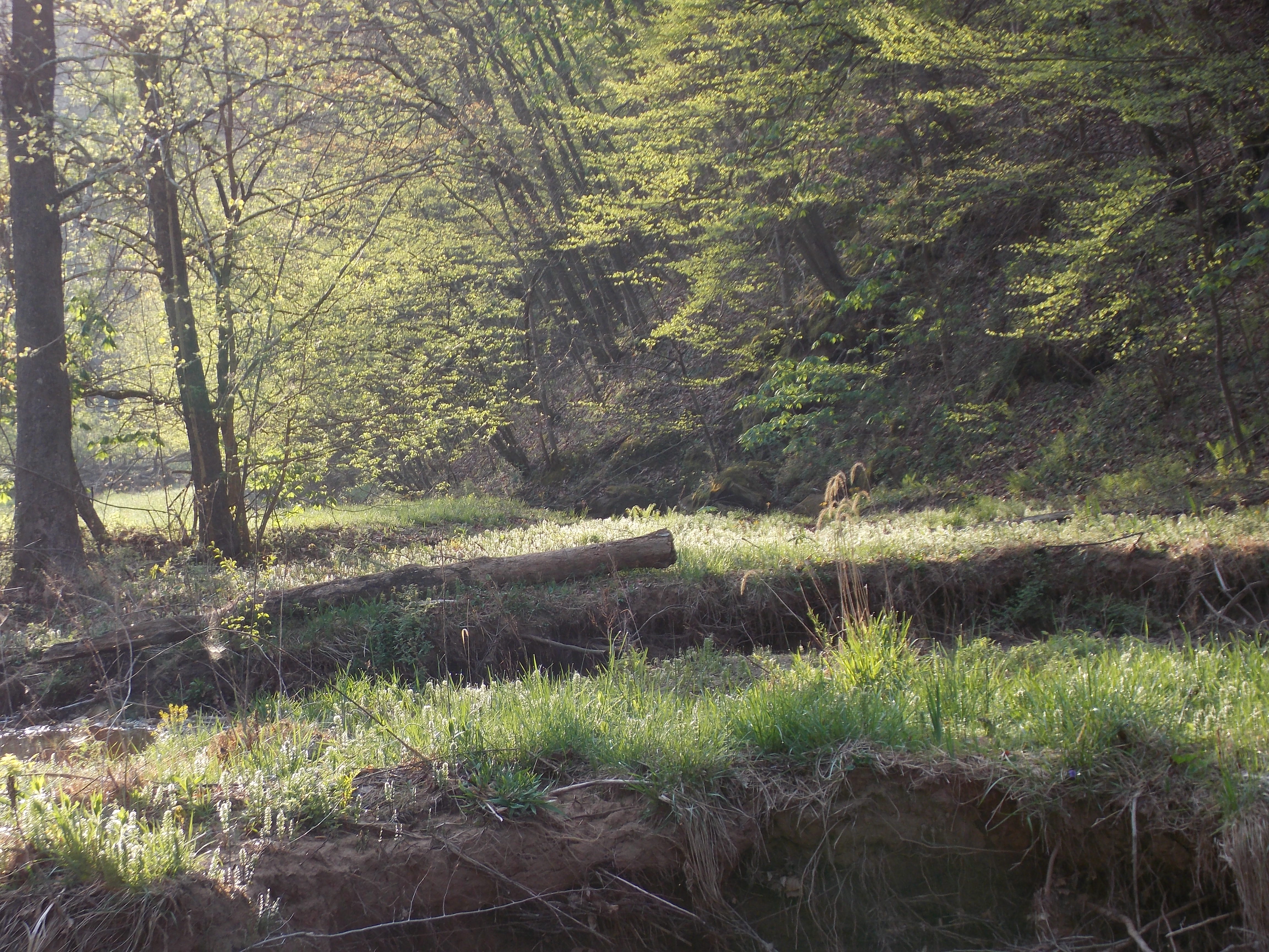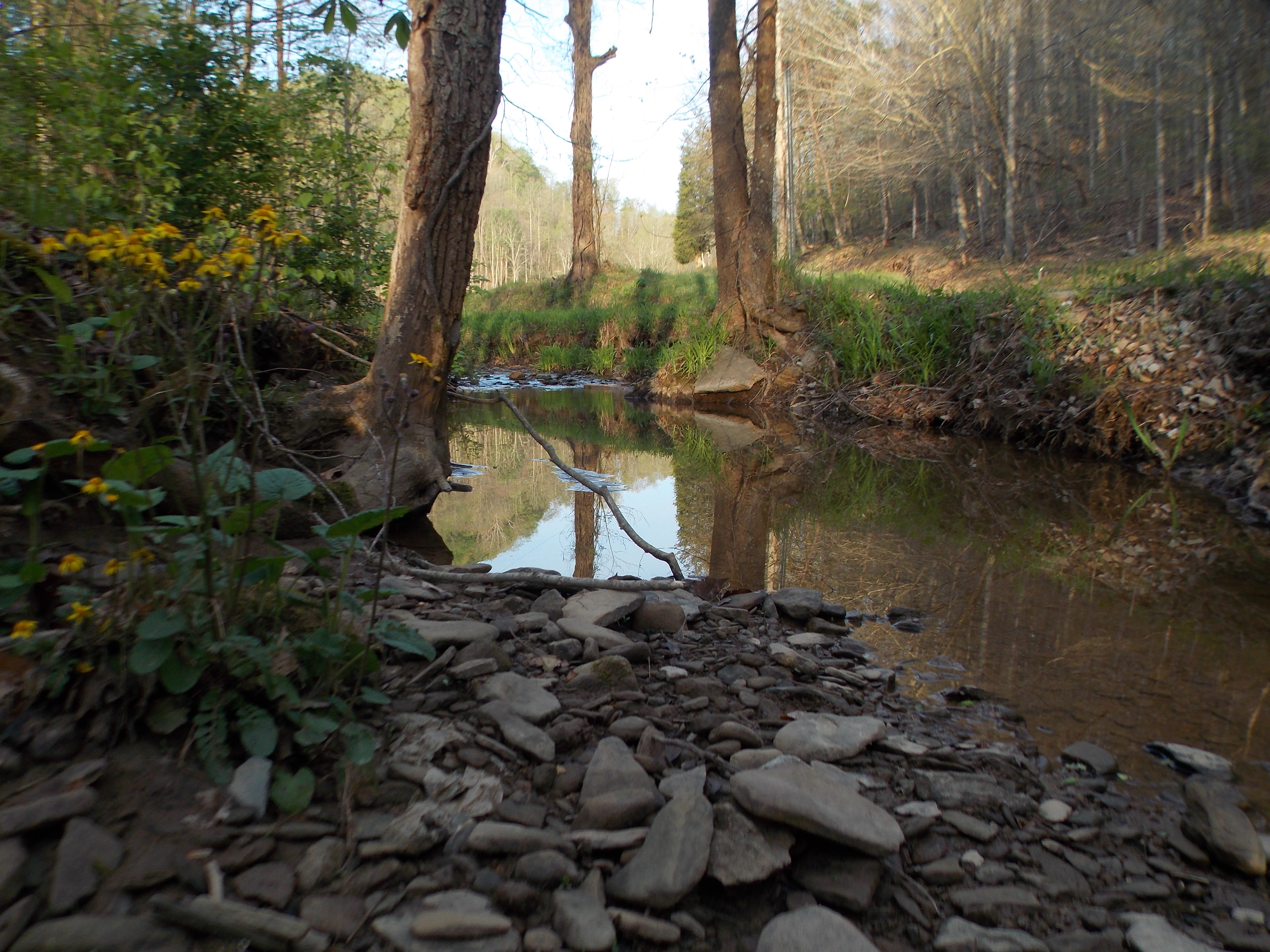 In this part of West Virginia, cleared narrow valleys between steep wooded hillsides are the norm. Unfortunately, this usually means that creeks are cut to their banks by landowners, leaving little in the way of riparian vegetation. A healthy riparian zone is important to the health of a stream (and beyond) for several reasons not the least of which is erosion control. Plants of various types and sizes help to stabilize the stream bank and to keep one’s property from washing away down the North Fork River perhaps and on to the Mississippi. But a good riparian zone also: