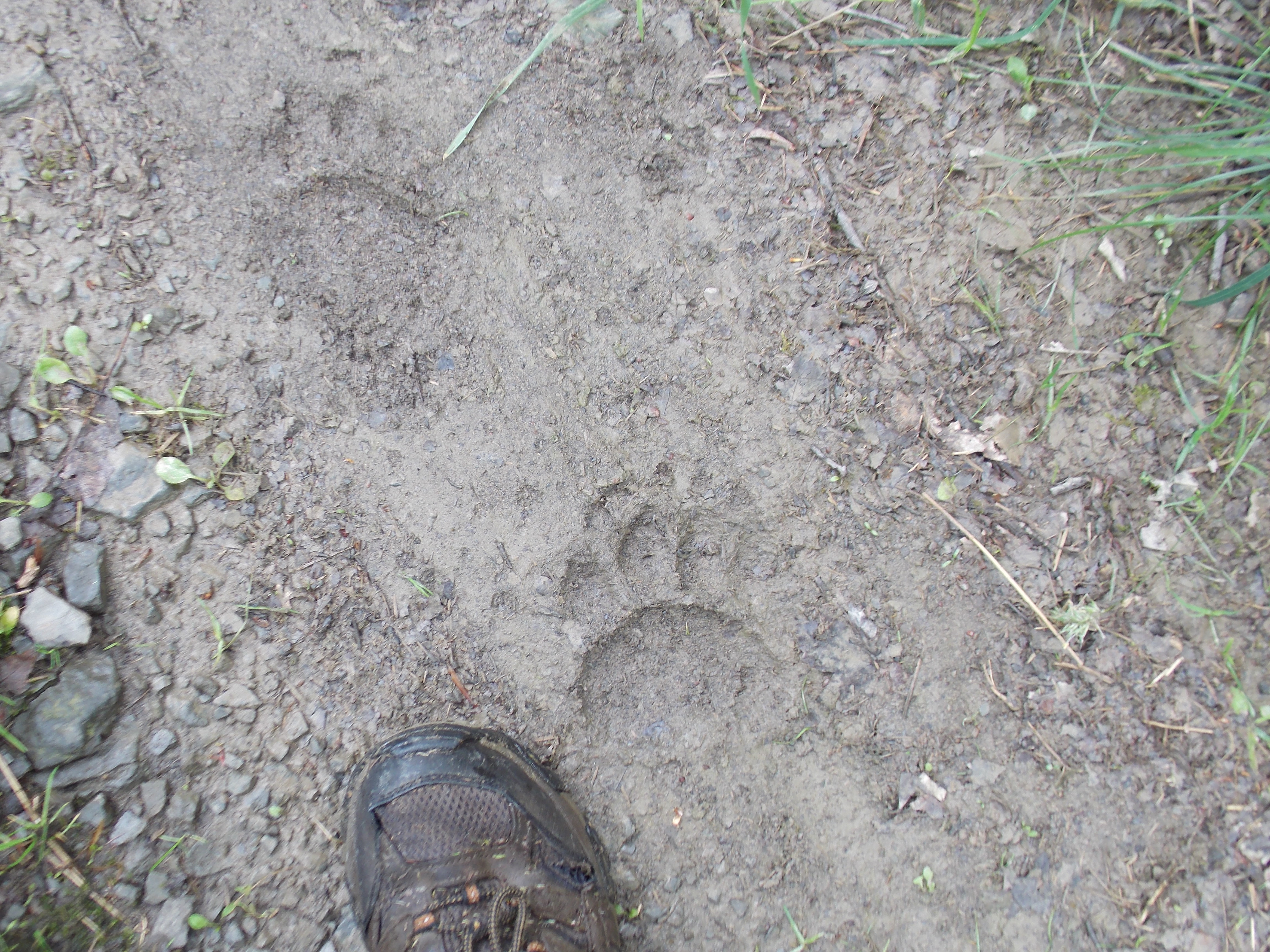 I climbed up and down on the old woods road I followed, a place that hadn’t seen traffic in quite a while, especially because of the gates. At the top of one rise I found the largest patch of blueberries I’ve ever seen in Pennsylvania accompanied, of course, by very fresh bear tracks in the muddy parts of the road.