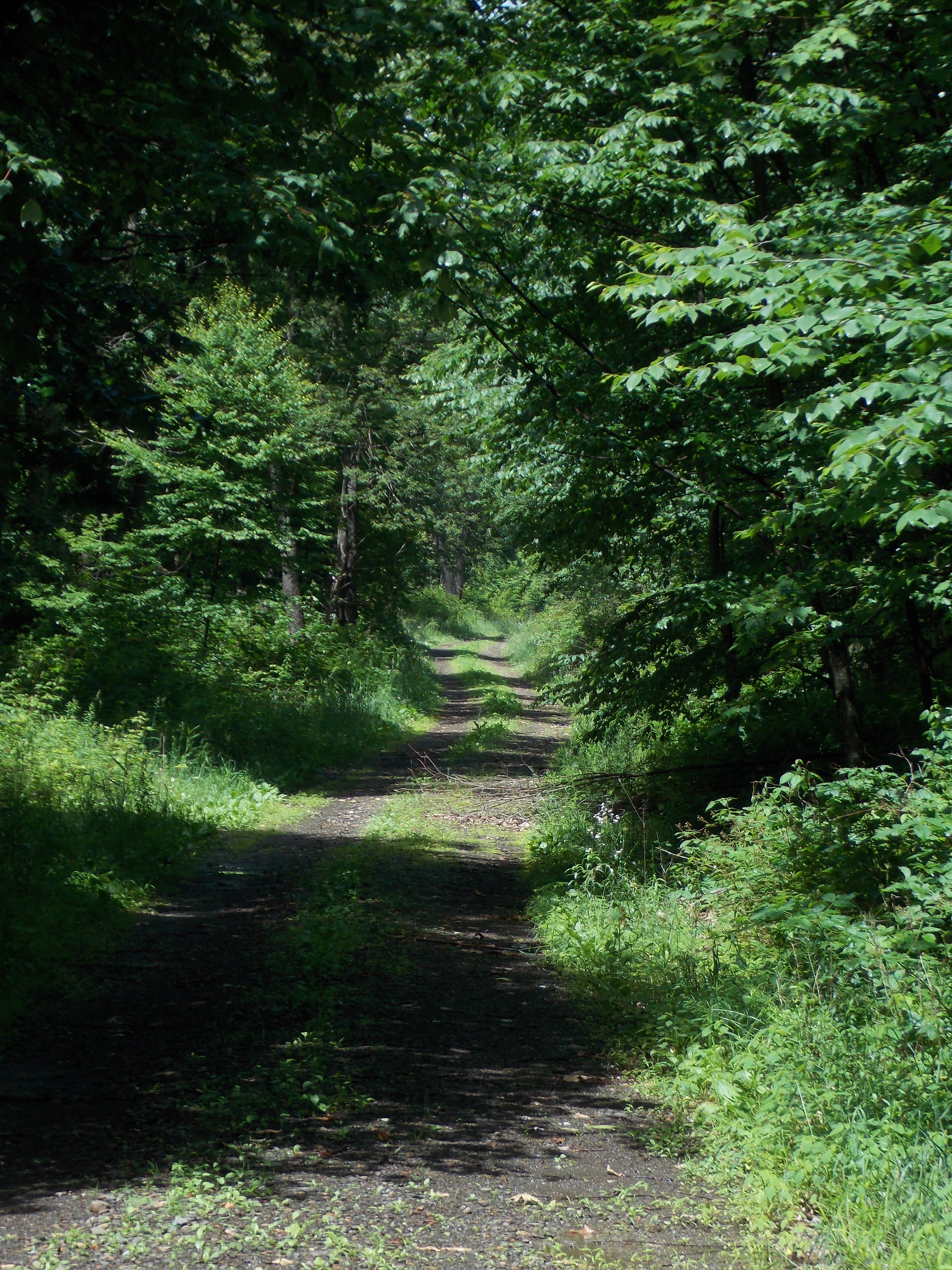 The road was newly graveled with loose railroad-grade gravel, the stuff that tears up feet like little else, especially while carrying a heavy pack; believe me, I know. The first mistake I’d made, and realized fairly quickly, was to walk in without any kind of map. I don’t use GPS and here in Pennsylvania, I’m very seldom in woods so extensive that I can’t put the map in my head and then navigate around by compass. But I was in a different kind of environment today. I could have spent quite a while in search of a road out here if I’d become lost. Then too, a map would have done me only so much good. In places like this, especially in places that are timbered from time to time, little roads come and go, some disappearing into the underbrush while others were cut in and graveled last year to accommodate trucks.