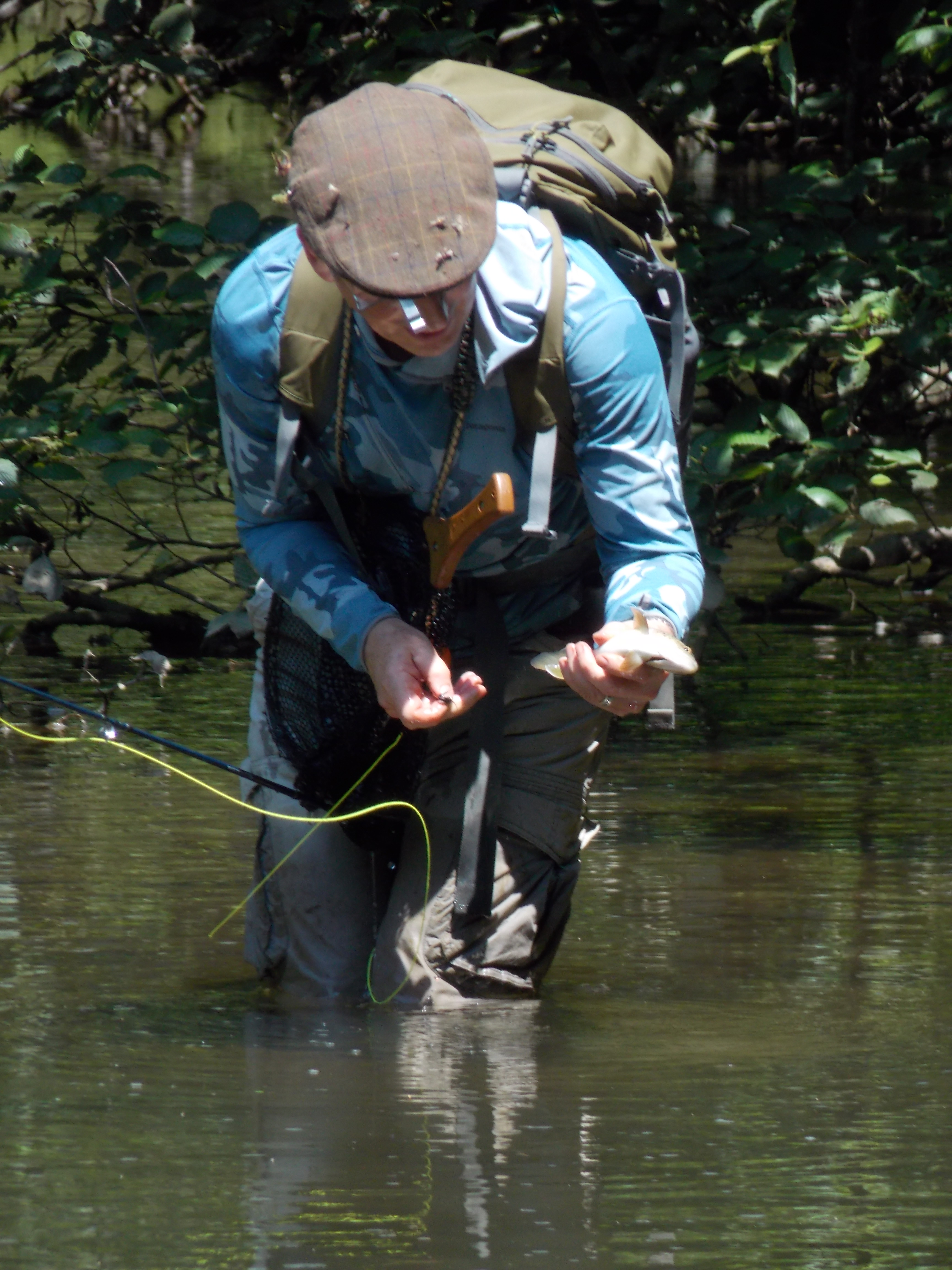 The stream Nigel and I fished was full of brown and rainbow trout but the hemlocks all around would have once overhung a spring-fed brook trout fishery. The day before we showed up the water had been too high and dirty here to even present flies but we fished low and clear pools today. We passed hundreds of lactarius mushrooms that wouldn’t have been here a few days earlier. There were species of birds here I’d never seen before. The individual pools and runs were re-arranged and there were dead trees washed into new places and washed out of old places, all of which the trout would have had to adapt to, sometimes quickly.
