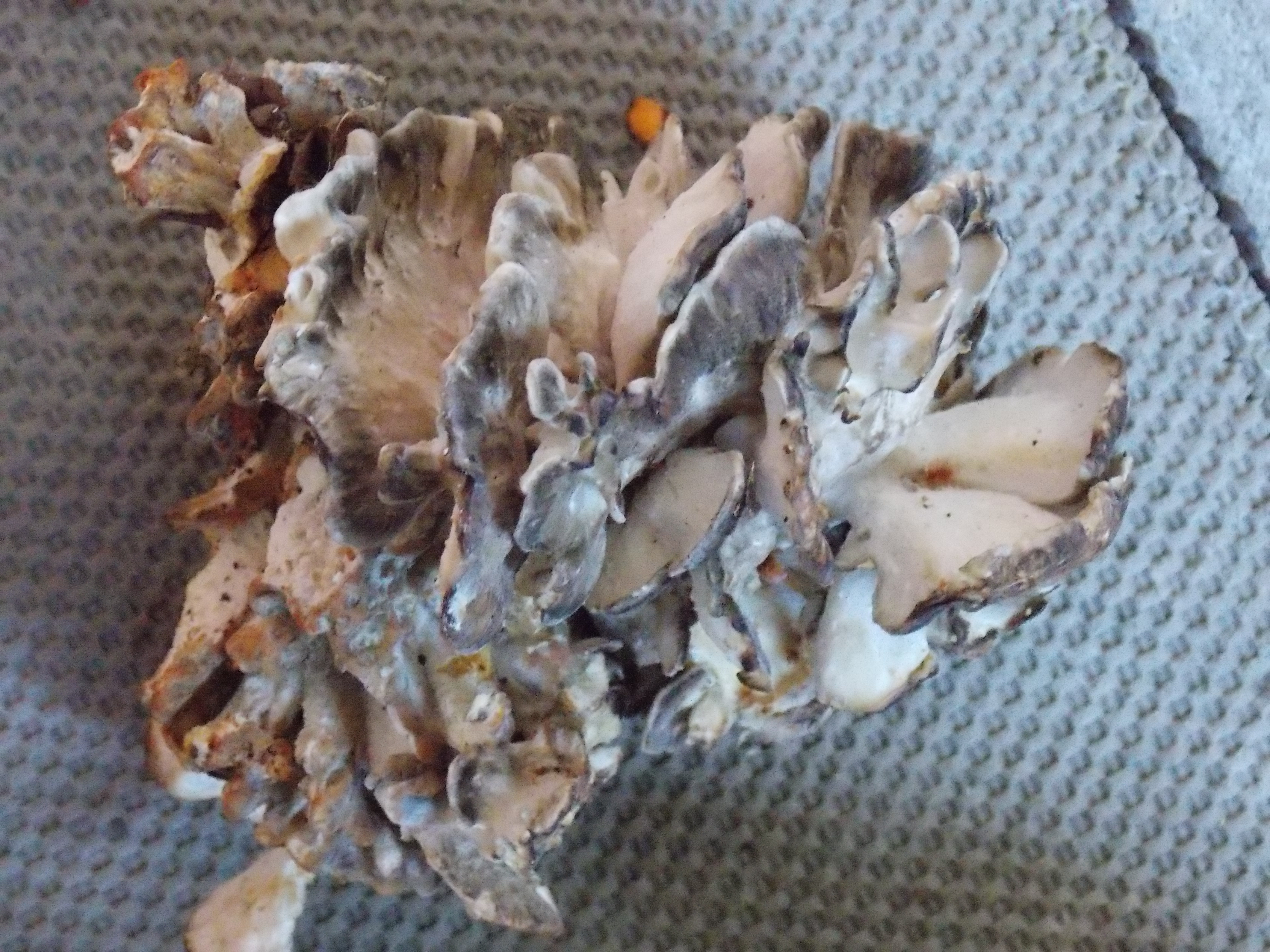 The Japanese name for this prize edible is “Maitake” meaning “We will dance when it is found.” I sympathize with this and hope no one has secretly been recording the moments I’ve found clusters of this mushroom. And, by the way, it does come in clusters, sometimes appearing as a single mushroom at the base of a tree but more often appearing in groups, as though you needed more than a single five pound mushroom. That first Maitake I found had two “little brothers.”