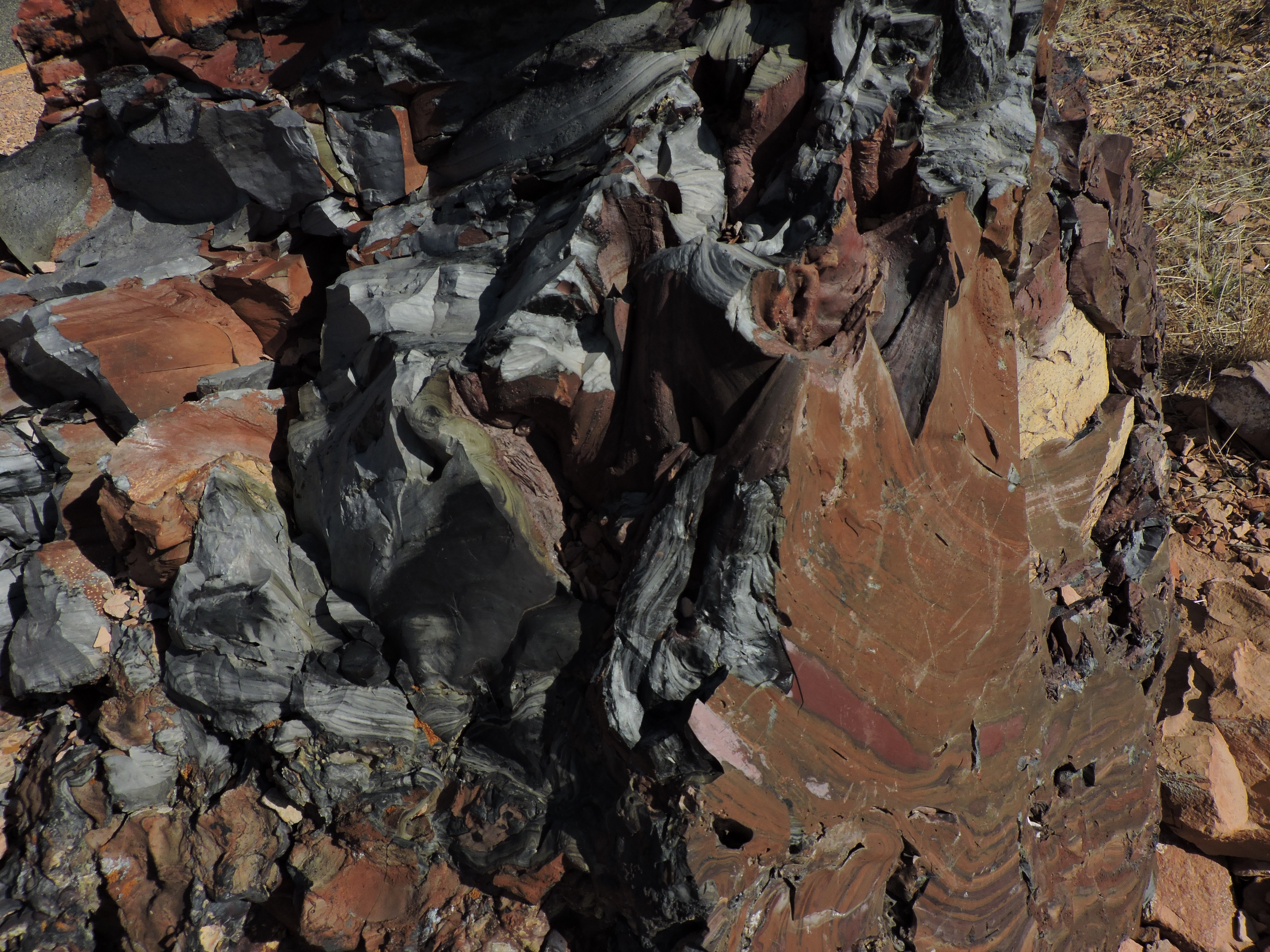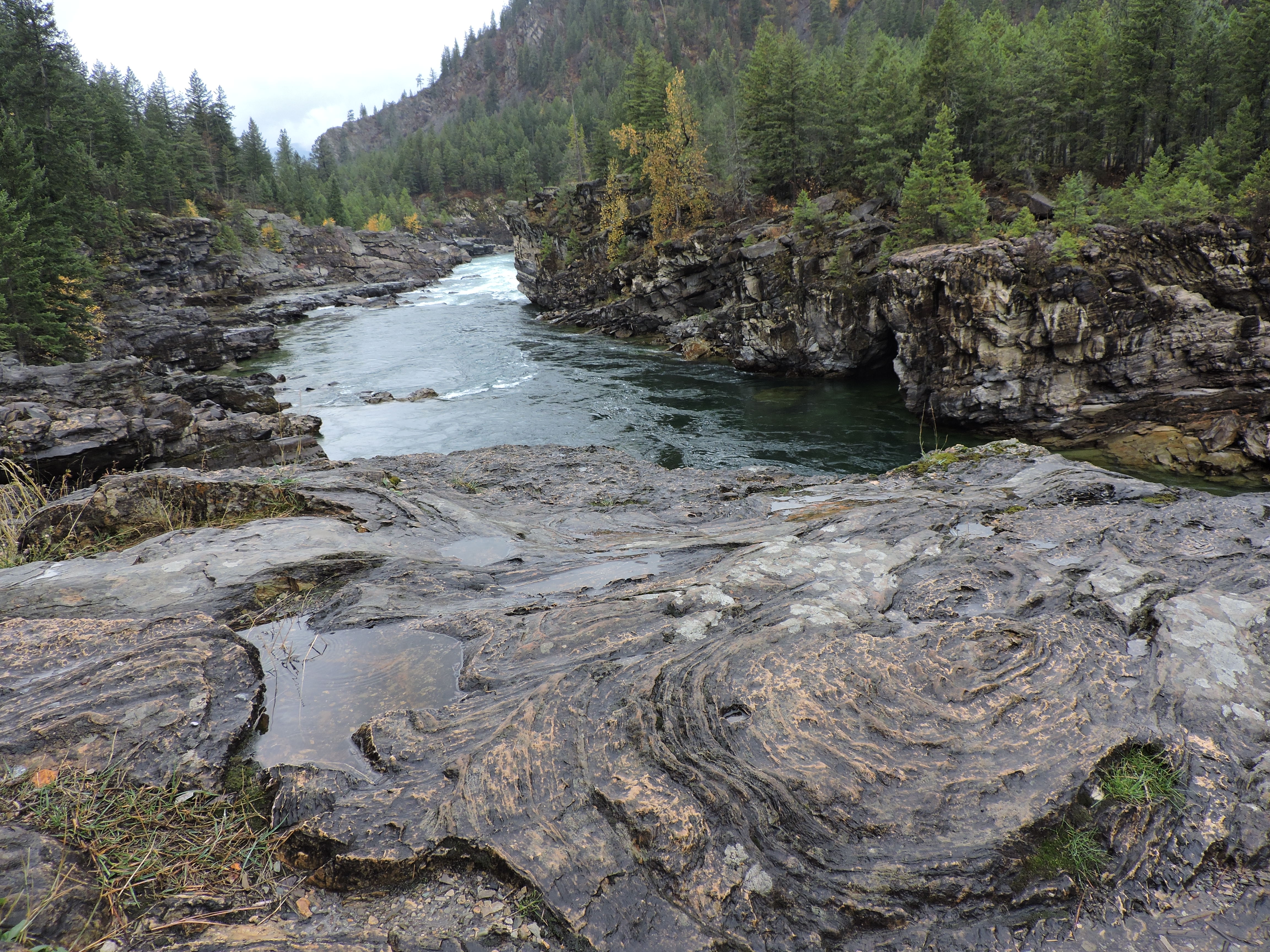 We drove about fifteen minutes into Montana before our first rock stop along the Kootenay River. There were things here that looked like agates but, in retrospect, probably weren’t. We had Kootenay Falls almost to ourselves just a bit later, where we photographed vivid stromatolite fossils – some of the earliest life forms, though maybe not the most agile, speedy or handsome. The next day we crossed Marias Pass in the Rockies and scooted out onto Montana’s high plains.